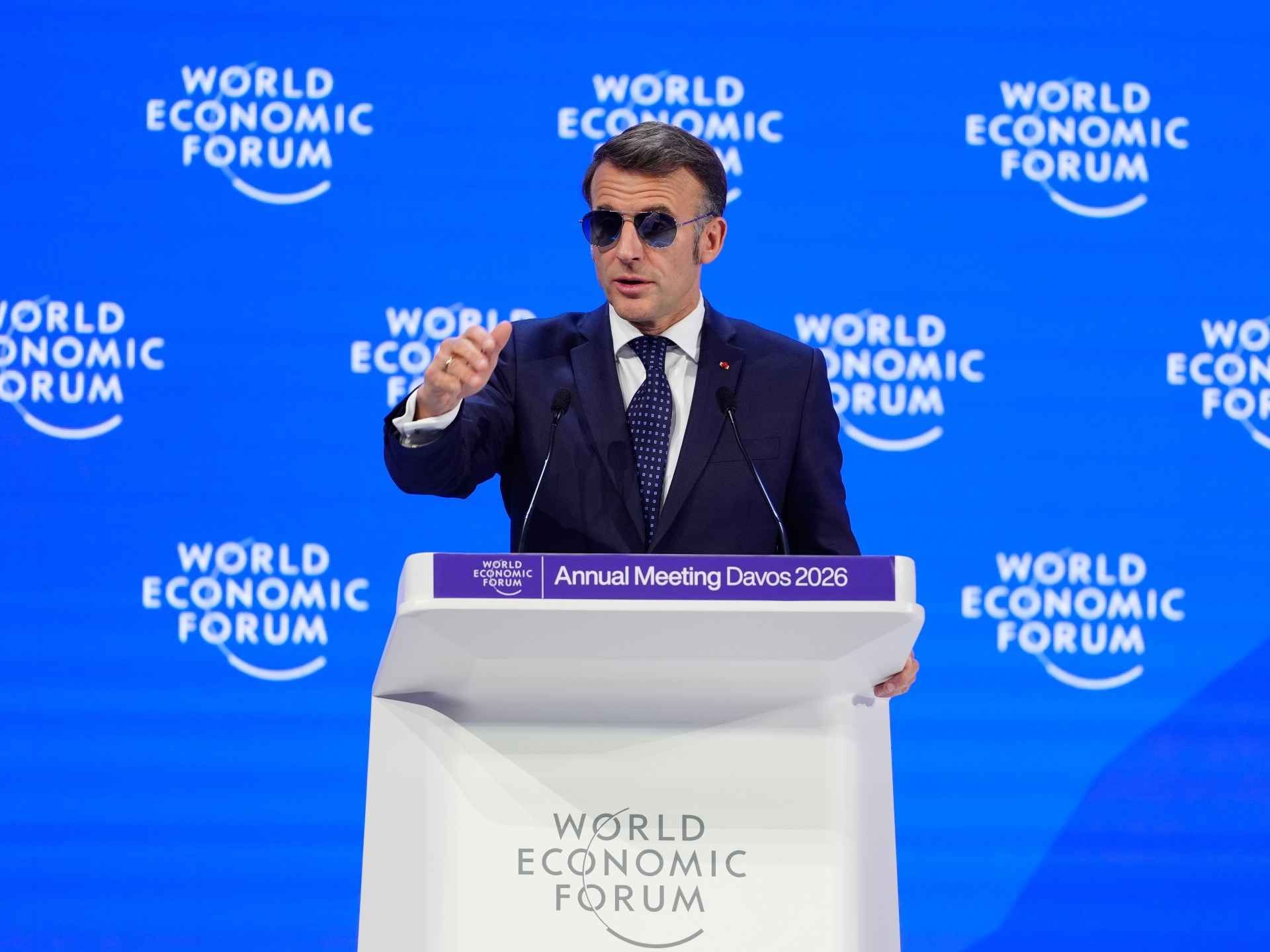 تفاعلت منصات التواصل الاجتماعي مع ظهور الرئيس الفرنسي إيمانويل ماكرون وهو يرتدي نظارات شمسية خلال كلمته أمام المنتدى الاقتصادي العالمي في دافوس، أمس الثلاثاء، من