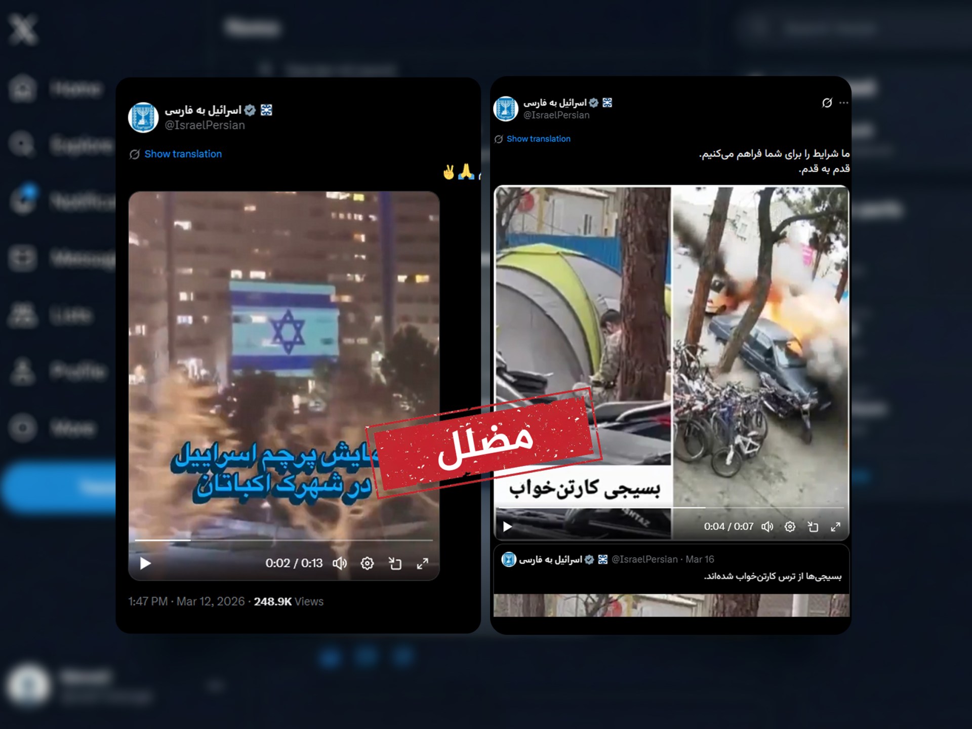 بينما تتواصل المواجهات الميدانية، تشهد المنصات الرقمية نشاطا متزايدا لمحتوى بصري متداول من حسابات إسرائيلية رسمية ناطقة بالفارسية، يتضمن مقاطع وادعاءات تتعلق باستهداف عناصر أمنية
