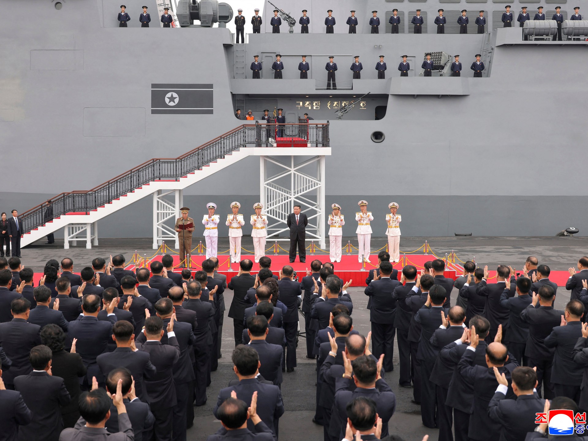 تفقد الزعيم الكوري الشمالي كيم جونغ أون المدمرة البحرية “تشوي هيون”، قائلا إنها صنعت لـ”معاقبة استفزازات العدو”، وفق ما أفادت وسائل الإعلام الرسمية الاثنين. وحسب