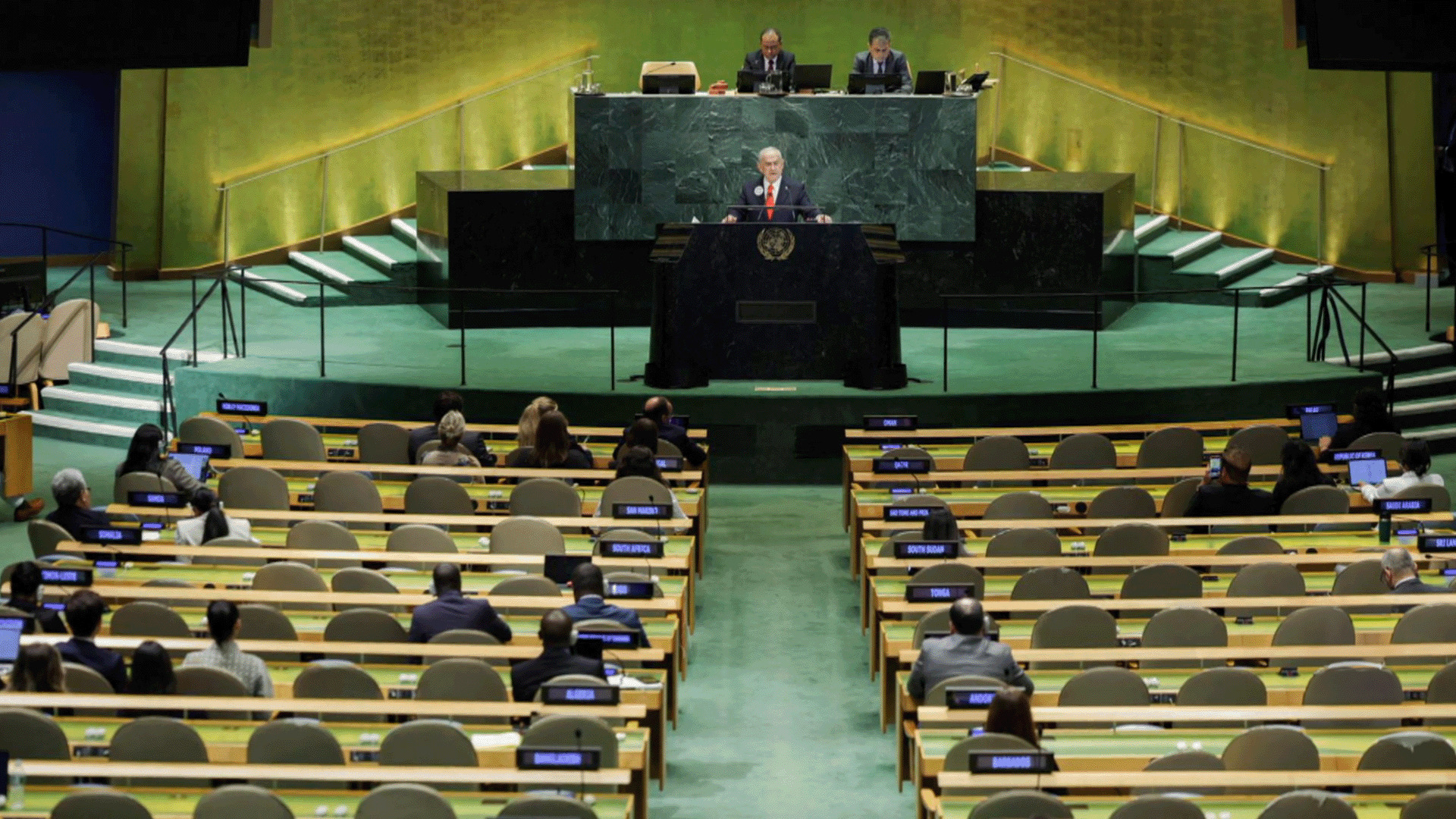 أثار الانسحاب الجماعي لـ77 وفدا من قاعة الجمعية العامة للأمم المتحدة، قبل إلقاء رئيس الوزراء الإسرائيلي بنيامين نتنياهو كلمته، موجة احتفاء واسعة على مواقع التواصل