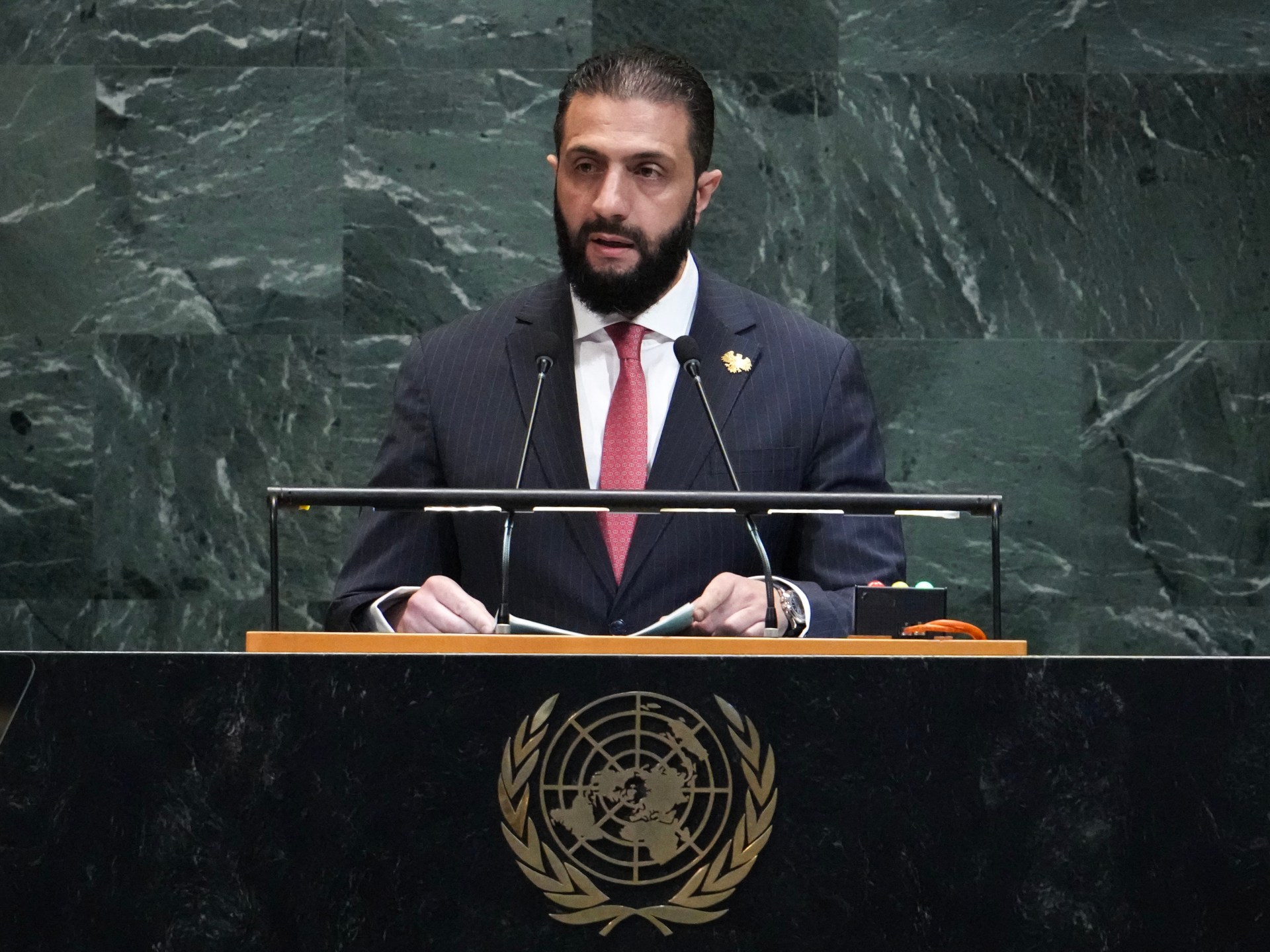 ألقى الرئيس السوري أحمد الشرع، أول خطاب له أمام الجمعية العامة للأمم المتحدة في دورتها الـ80 المنعقدة حاليا بنيويورك، وهي أول كلمة يلقيها رئيس سوري