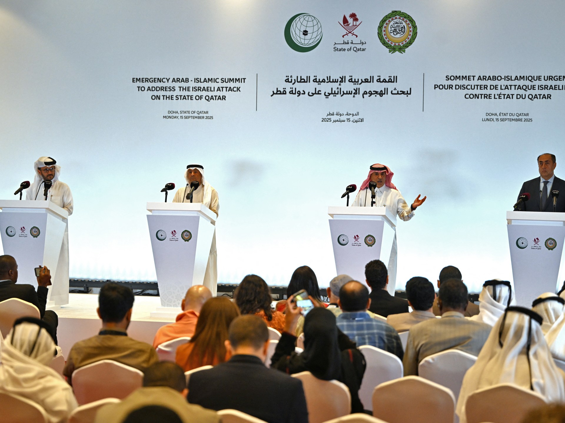 أكدت جامعة الدول العربية ومنظمة التعاون الإسلامي ومجلس التعاون الخليجي تضامنها مع دولة قطر بعد العدوان الإسرائيلي على الدوحة، في حين وصفت قطر القمة العربية