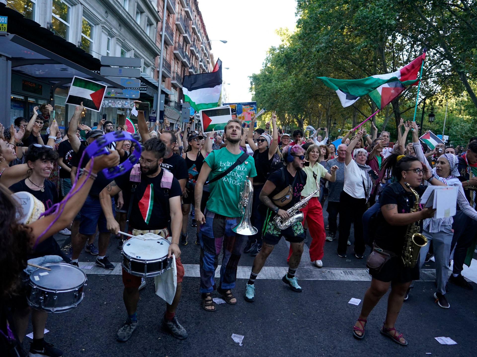 نزل إلى شوارع مدريد -أمس الأحد- أكثر من مئة ألف متظاهر مؤيد للفلسطينيين في المرحلة الأخيرة لطواف إسبانيا للدراجات الهوائية في ذروة تحركهم الذي بوشر
