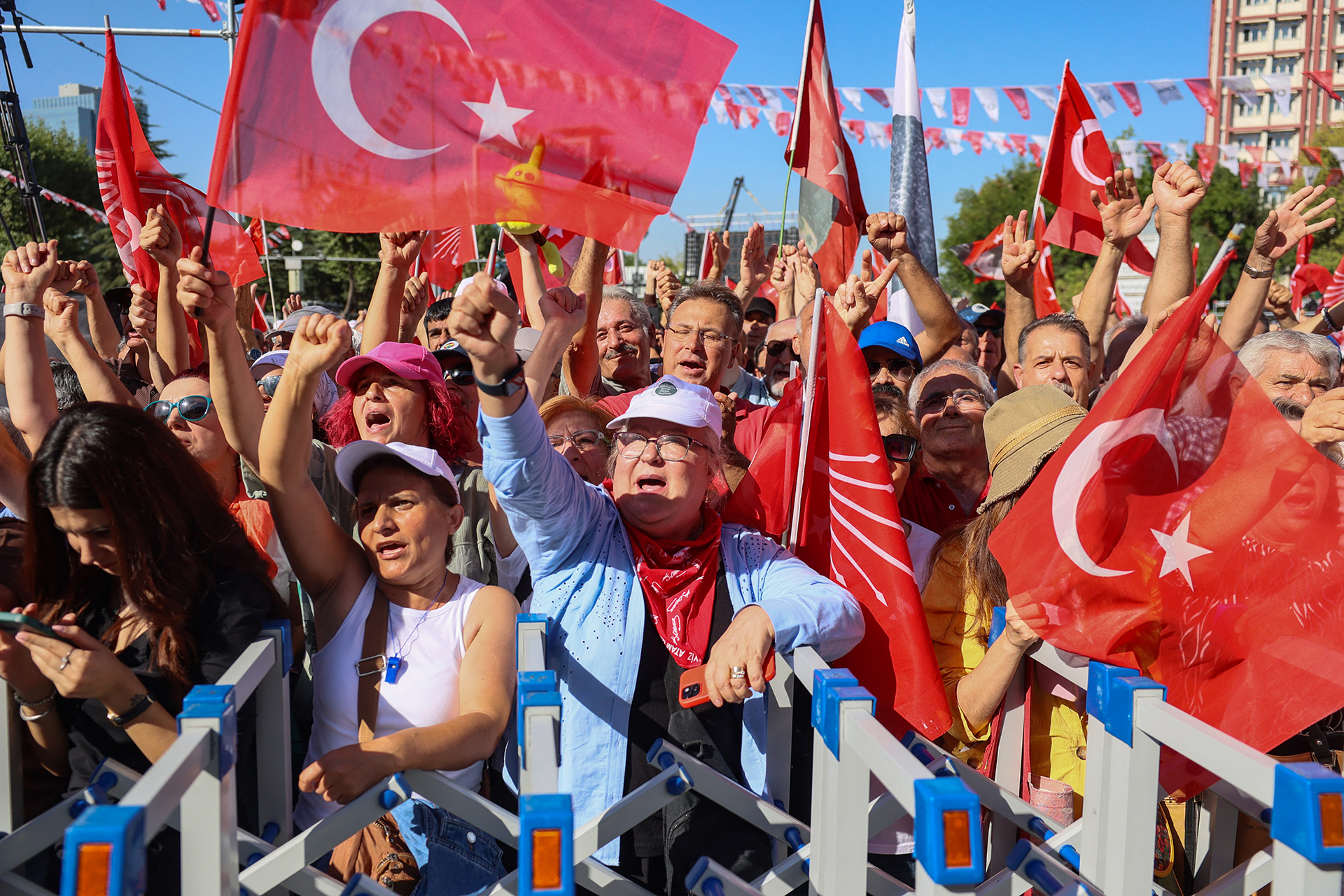شارك الآلاف في العاصمة التركية أنقرة -اليوم الأحد- في تظاهرة دعا إليها حزب الشعب الجمهوري المعارض، قبل جلسة استماع قضائية يمكن أن تؤدي إلى إطاحة