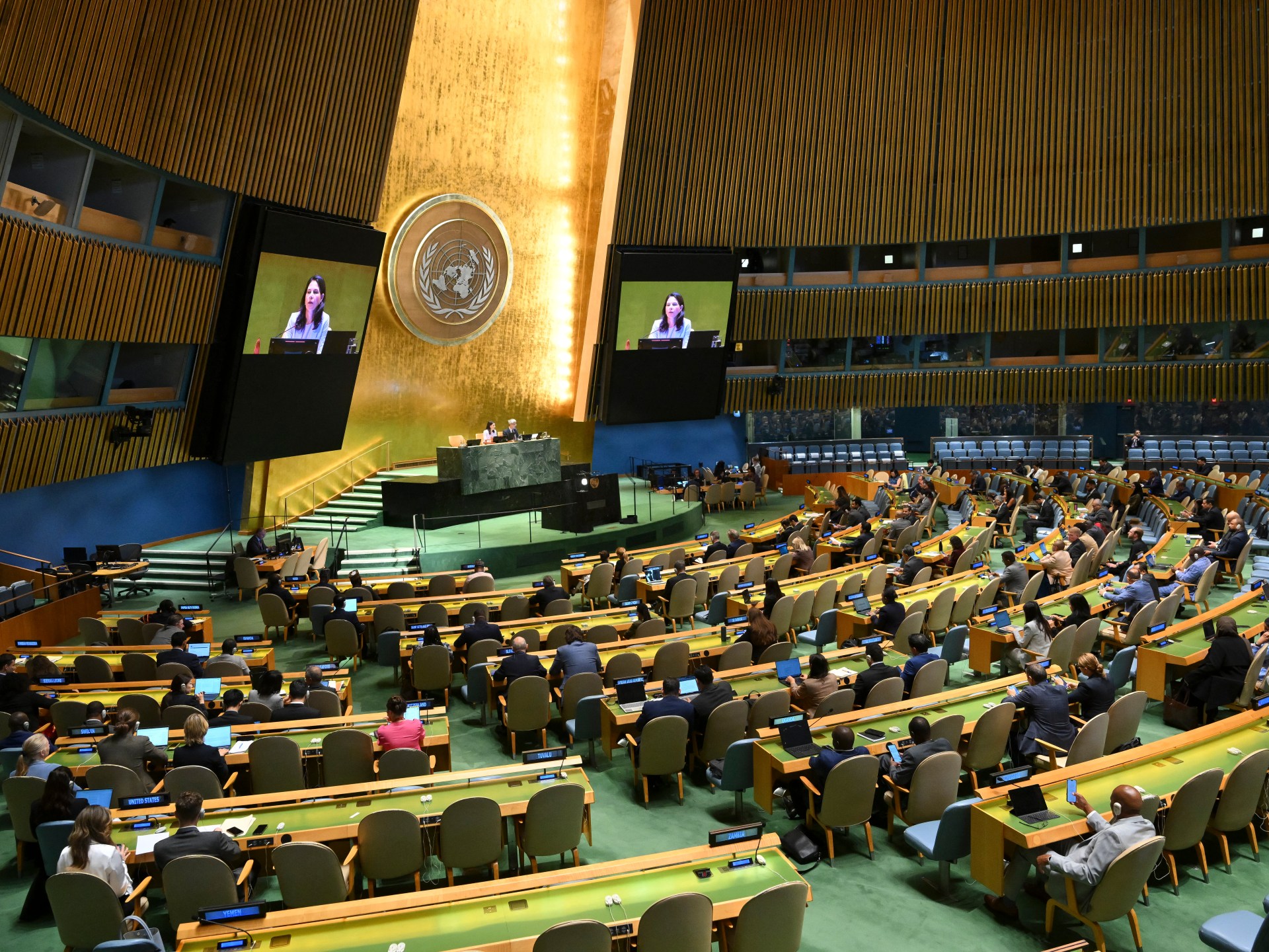 أقرت الجمعية العامة للأمم المتحدة اليوم الجمعة بأغلبية ساحقة “إعلان نيويورك” الذي يحدد “خطوات ملموسة ومحددة زمنيا ولا رجعة فيها” نحو حل الدولتين بين إسرائيل