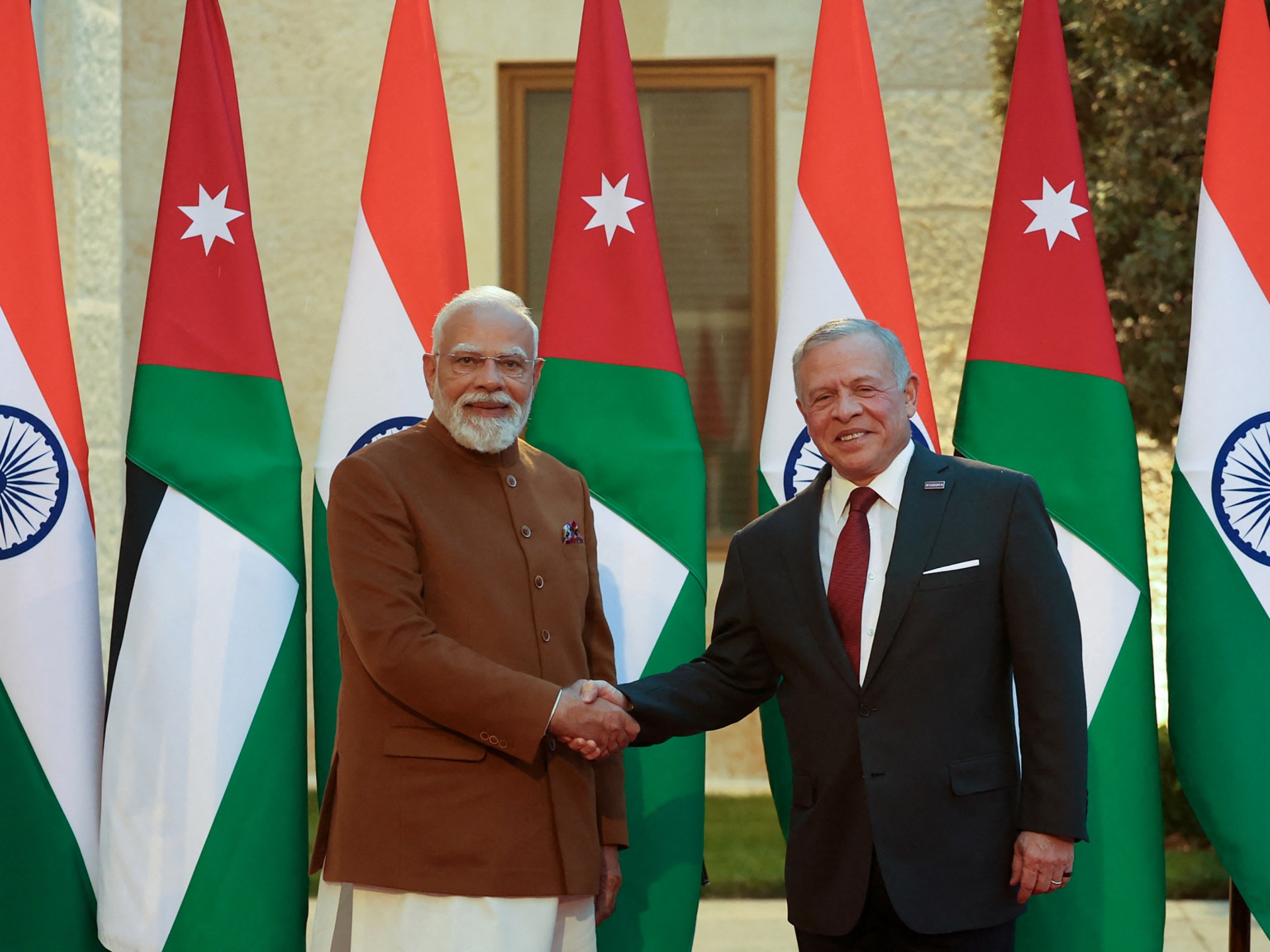 بحث ملك الأردن عبد ﷲ الثاني ورئيس الوزراء الهندي ناريندرا مودي -اليوم الاثنين- تعزيز التعاون الثنائي بين البلدين، إضافة إلى التطورات الإقليمية وضمان تنفيذ اتفاق