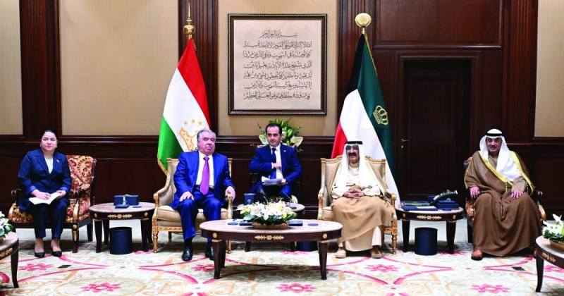 كونا – استقبل سمو أمير البلاد الشيخ مشعل الأحمد، بقصر بيان ظهر أمس، رئيس جمهورية طاجيكستان الصديقة إمام علي رحمان، والوفد الرسمي المرافق له، وبحضور