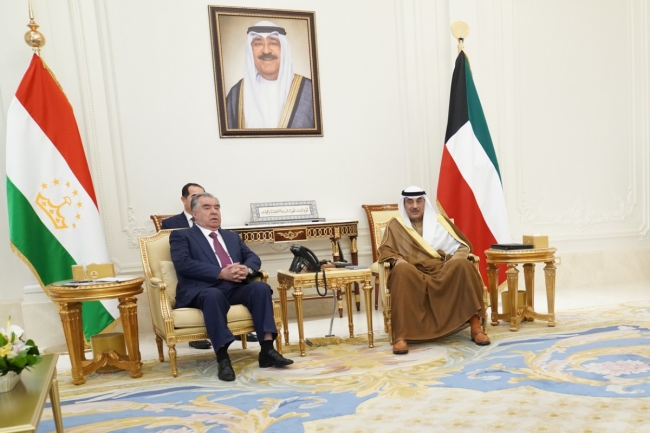 استقبل سمو ولي العهد الشيخ صباح الخالد حفظه الله بقصر بيان صباح اليوم رئيس جمهورية طاجيكستان إمام علي رحمان والوفد الرسمي المرافق وذلك بمناسبة زيارته