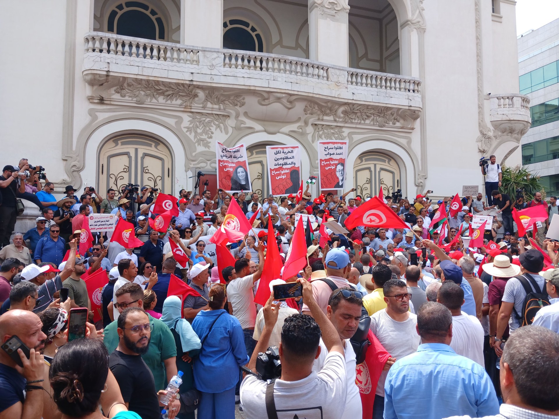 تجمع النقابيون في تونس العاصمة للدفاع عن الاتحاد العام التونسي للشغل، حيث أكد الأمين العام نور الدين الطبوبي أن المنظمة تعرضت لهجوم همجي سيبقى في