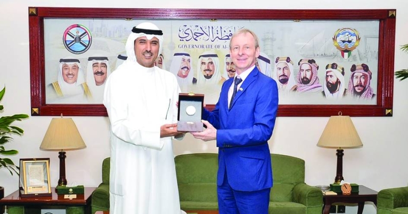 استقبل محافظ الأحمدي الشيخ حمود جابر الأحمد، في مكتبه بديوان عام المحافظة أمس، سفير مملكة بلجيكا لدى دولة الكويت السفير كريستيان دومز، حيث جرى تبادل