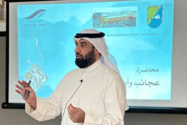 نظّمت دارة الأنشطة الثقافية والفنية في عمادة شؤون الطلبة، محاضرة بعنوان «كيف أعيش مع القرآن»، قدّمها المحاضر والمدرب المعتمد صلاح الهاشم، بالتعاون مع الجمعية الكويتية