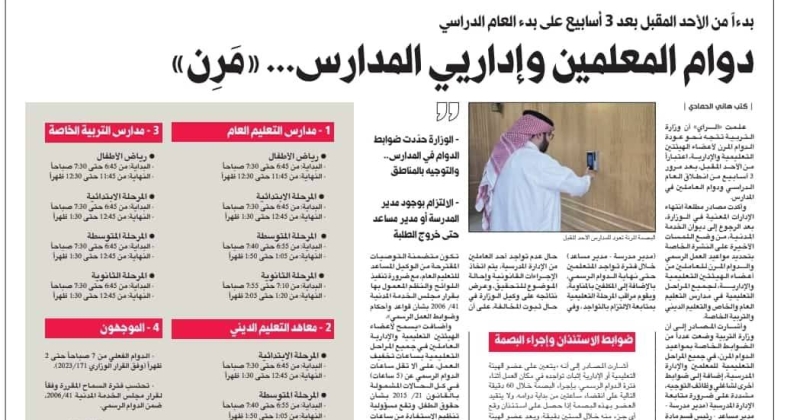 تأكيداً لما نشرته «الراي» في عددها الصادر اليوم، أصدر وكيل وزارة التربية بالتكليف منصور الديحاني، نشرة عامة في شأن تحديد مواعيد العمل الرسمي والدوام المرن