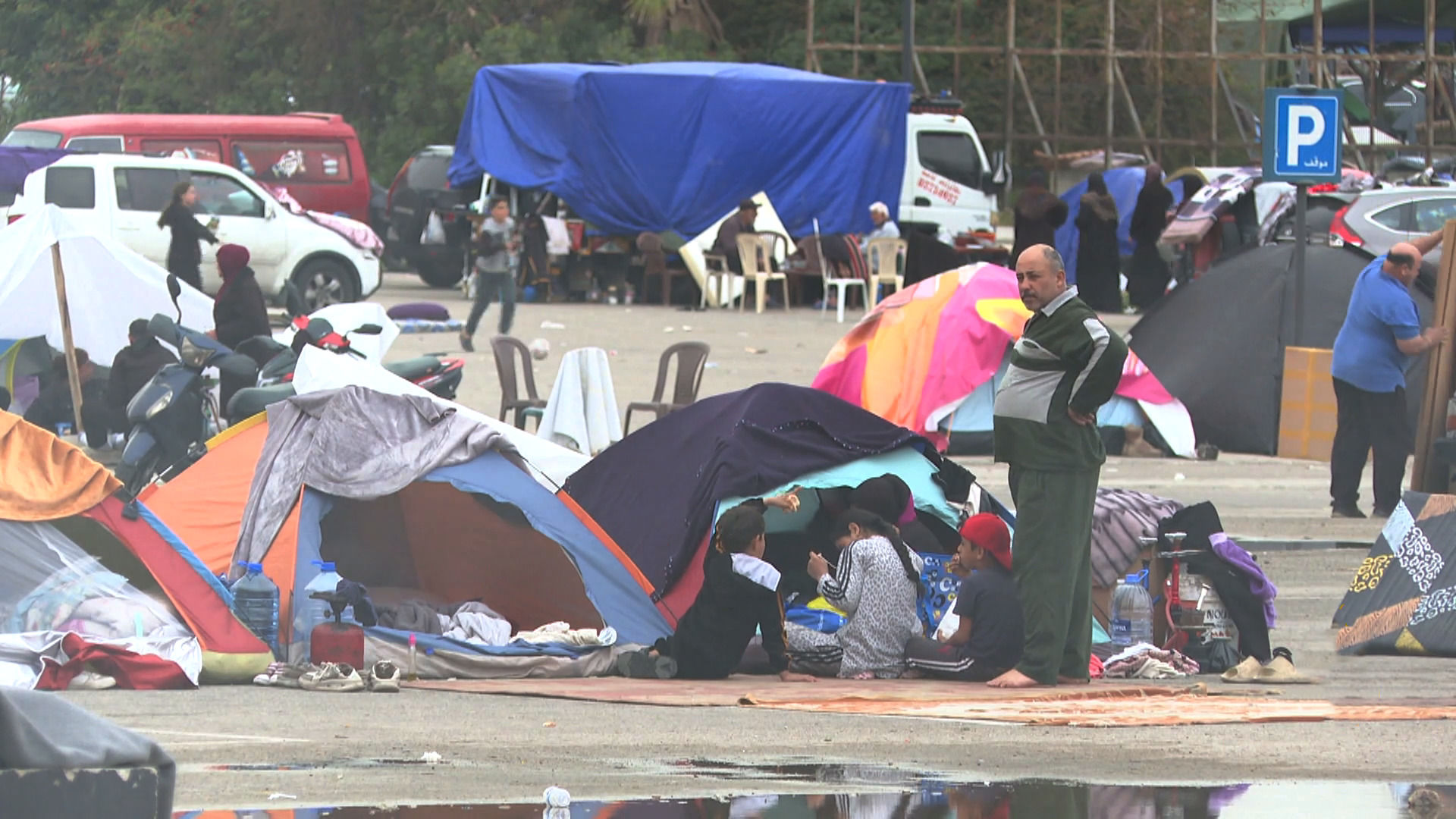 وترتب عن هذا الواقع اكتظاظ في مراكز الإيواء التي خصصتها الحكومة للنازحين، واضطرار آلاف آخرين لنصب الخيام في العراء. مراسلة الجزيرة ميساء الفطناسي تجولت