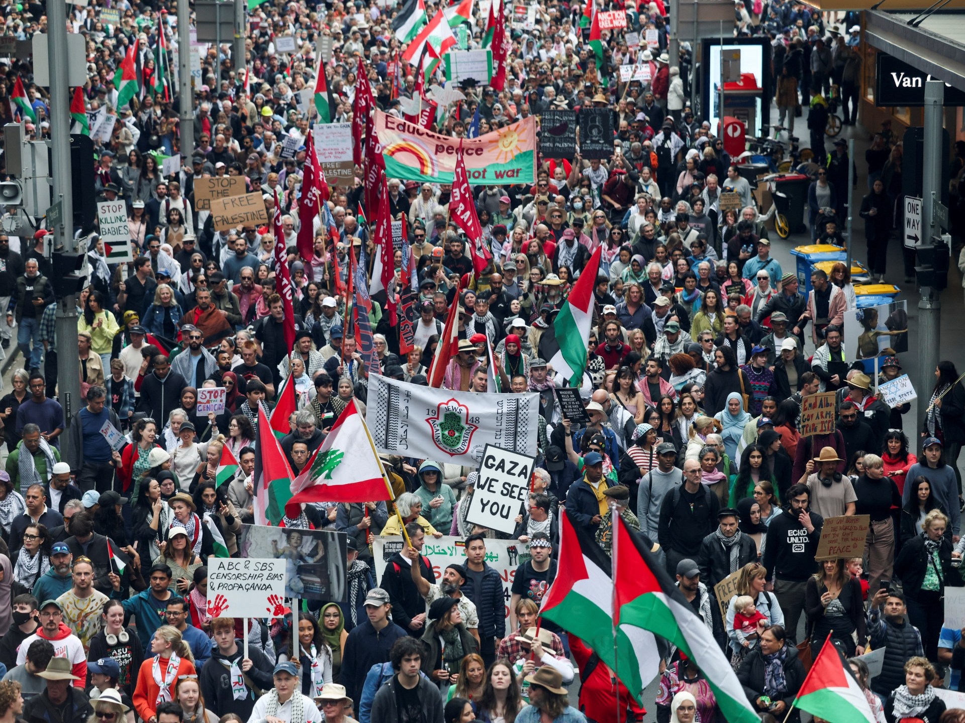 قال منظمون إن عشرات آلاف الأستراليين شاركوا في مسيرات داعمة للفلسطينيين اليوم الأحد، وسط توتر العلاقات بين إسرائيل وأستراليا في أعقاب إعلان الحكومة المنتمية ليسار