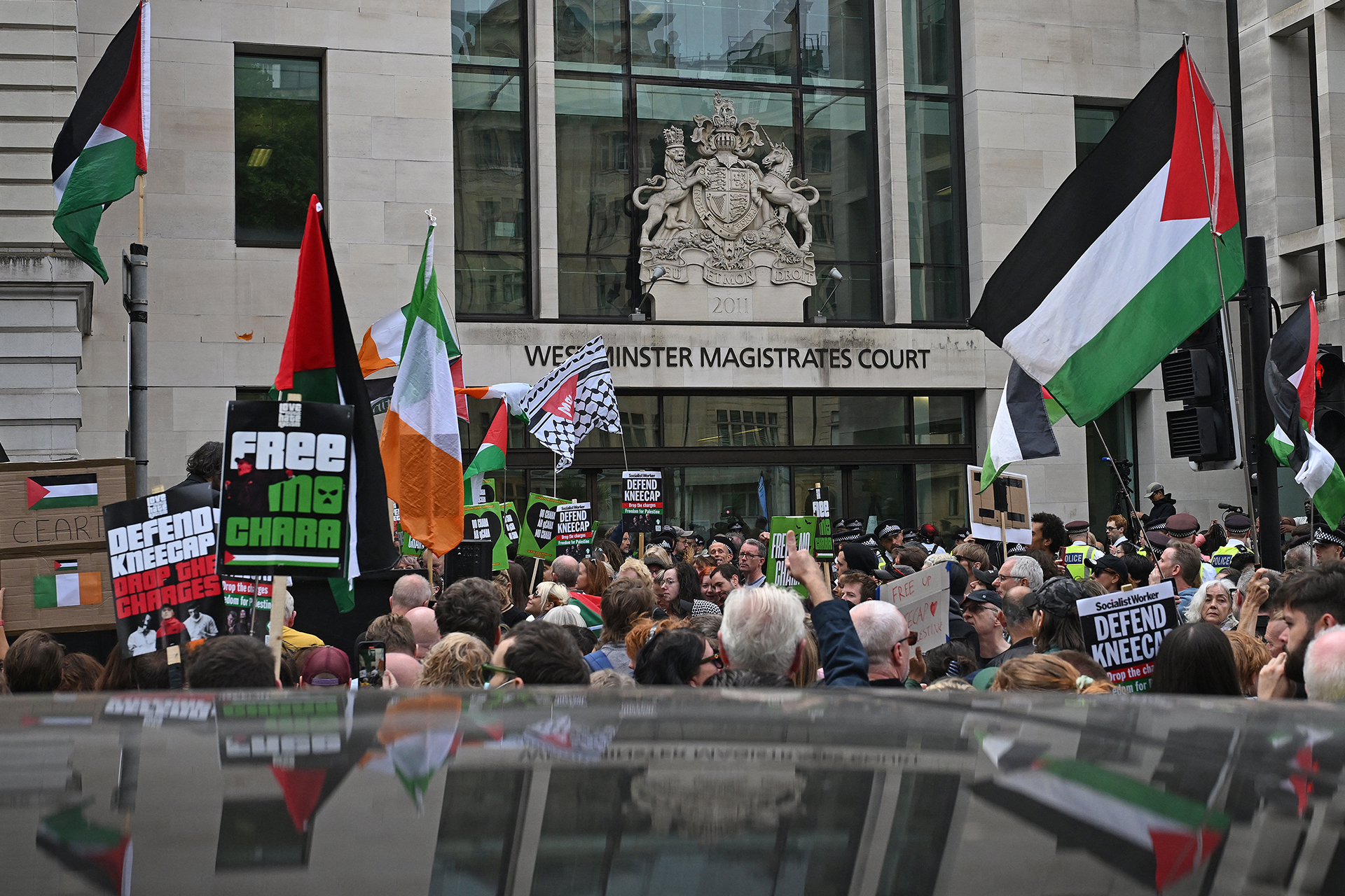 مثل مغني الراب في فرقة “نيكاب” الأيرلندية الشمالية مو شارا أمام محكمة وستمنستر الجزئية في لندن اليوم الأربعاء بتهمة ارتكاب “مخالفة إرهابية” بعد رفعه علم