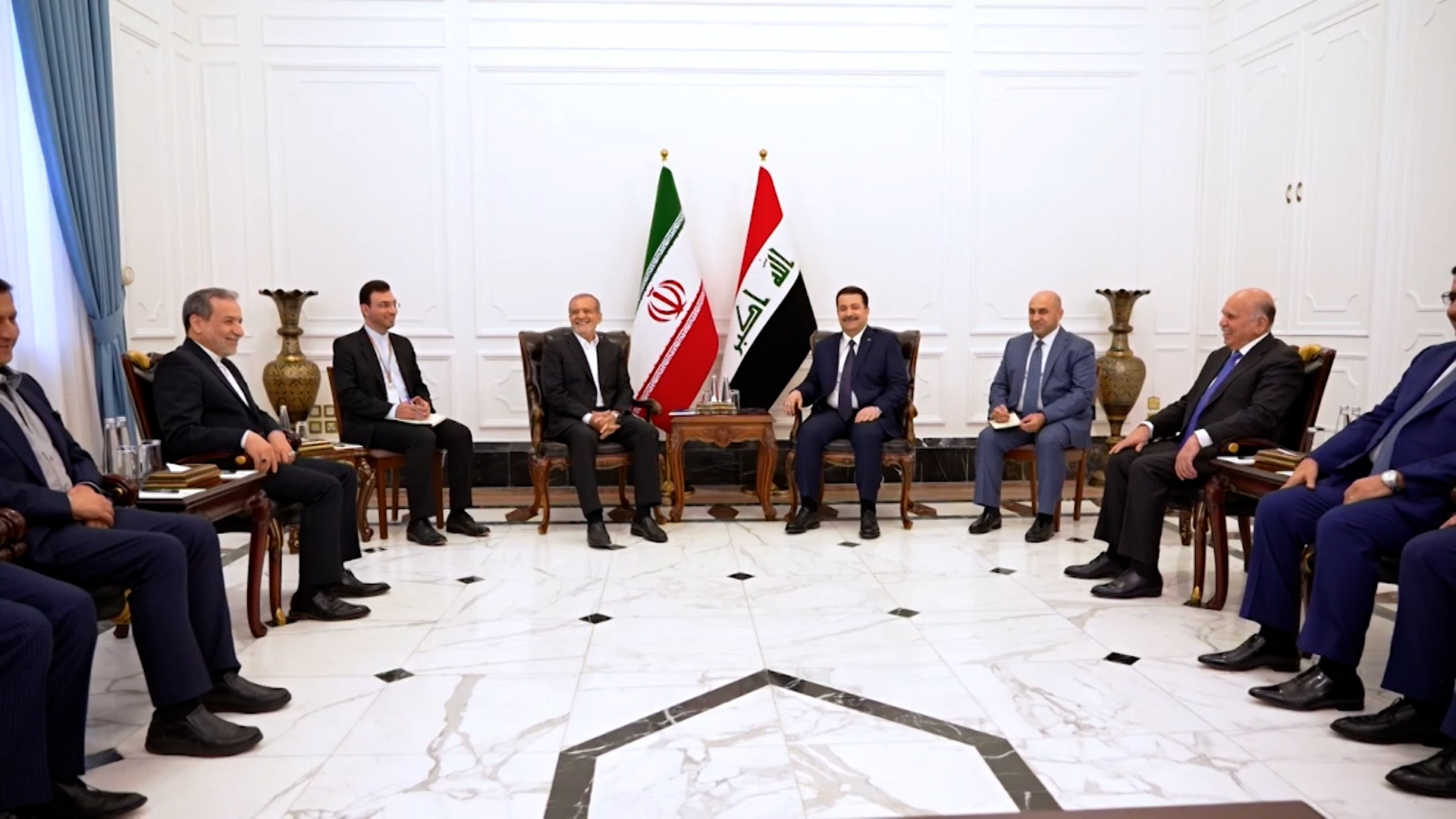 التقى الرئيس الإيراني مسعود بزشكيان في بغداد رئيس الوزراء العراقي محمد شياع السوداني في أول زيارة خارجية له منذ انتخابه في يوليو/تموز الماضي. وتصدرت المحادثات