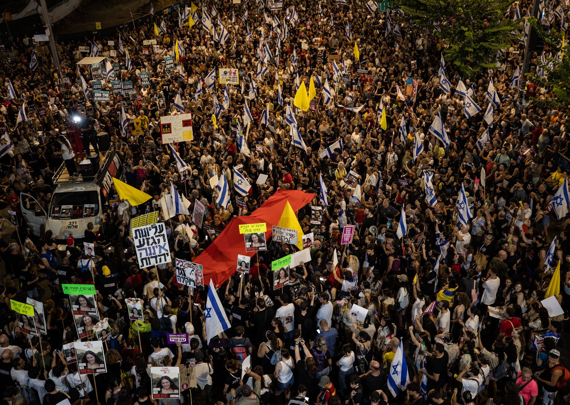 تظاهر آلاف الإسرائيليين قبالة وزارة الدفاع الإسرائيلية في تل أبيب للمطالبة بصفقة فورية تعيد الأسرى، وتحمّل رئيس الوزراء بنيامين نتنياهو وحكومته مسؤولية مقتلهم. وقالت مراسلة