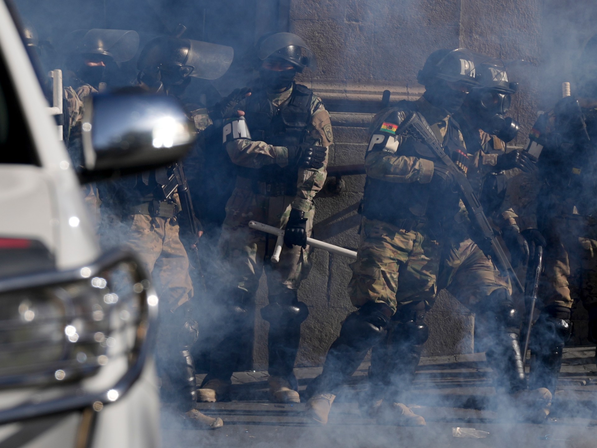 أفادت وكالة رويترز بأن دبابة اقتحمت مدخل القصر الوطني في بوليفيا، ودخل جنود المبنى الرئاسي، في حين أدان الرئيس تحركات بعض وحدات الجيش. ونقلت الوكالة