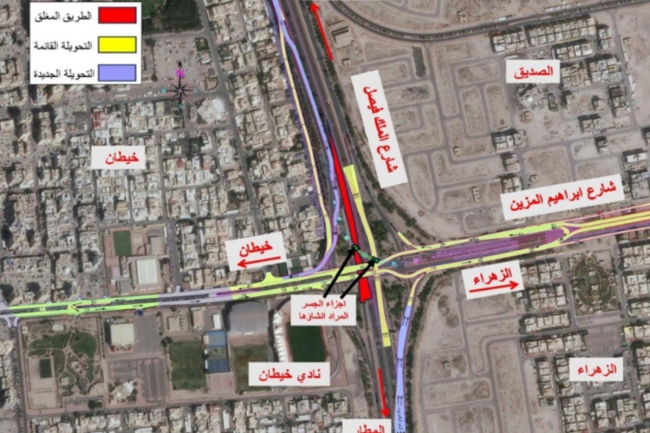 تغلق الهيئة العامة للطرق والنقل البري، بالتعاون مع الإدارة العامة للمرور، بشكل كامل ومؤقت، شارع الملك فيصل عند تقاطع خيطان باتجاه المطار غدا من الساعة