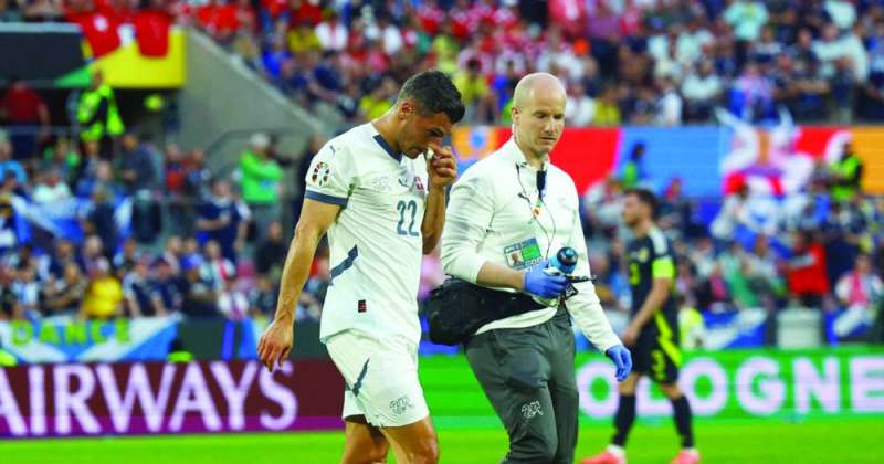 تعرّض مدافع منتخب سويسرا فابيان شار لكسر في الأنف خلال المباراة أمام أسكتلندا في كأس أوروبا، مساء الأربعاء. وأُصيب شار (32 عاماً)، خلال التحام مع