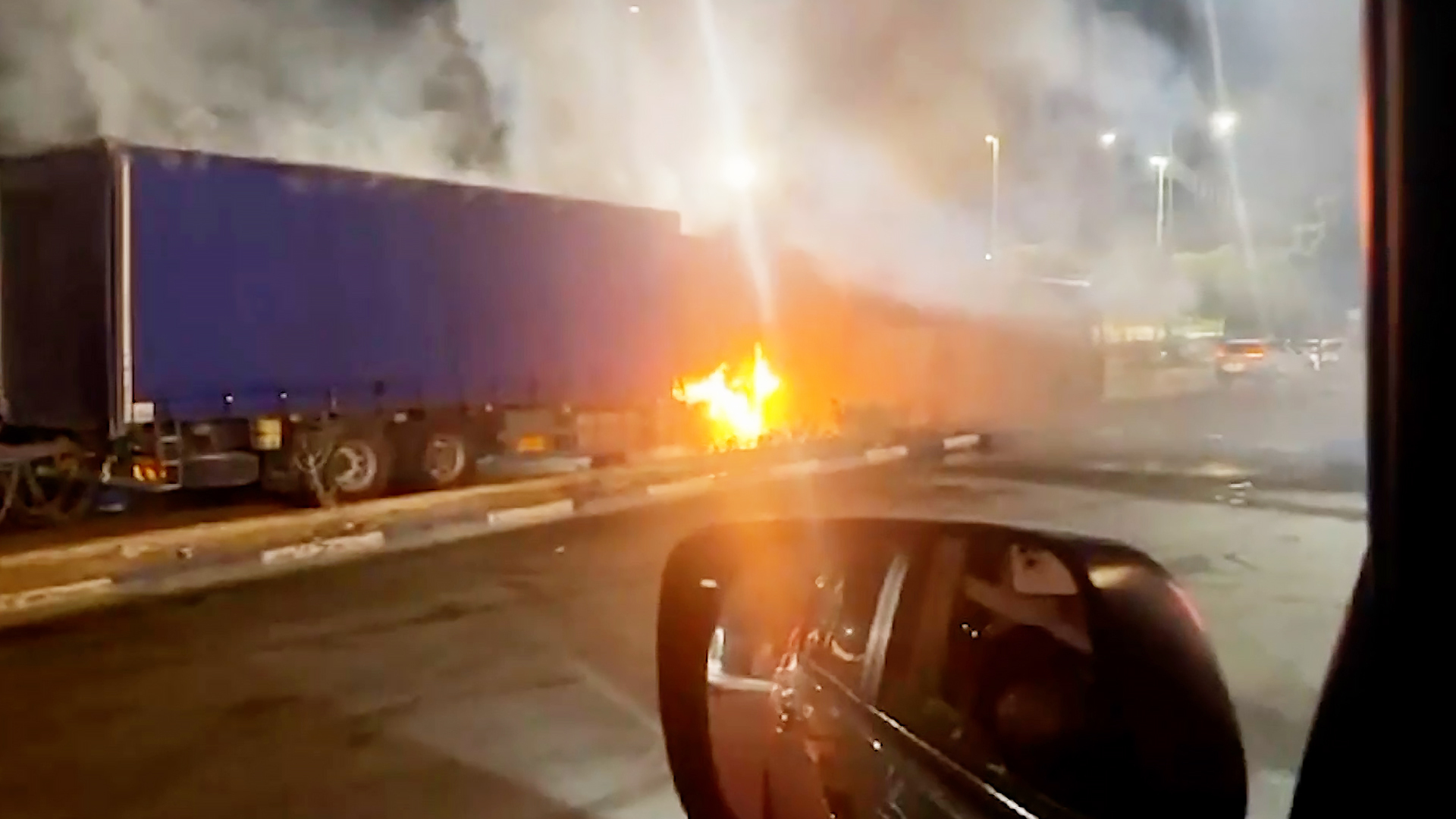 نشرت الجزيرة صورا خاصة تظهر قيام مستوطنين بإضرام النار في شاحنات مساعدات كانت في طريقها إلى قطاع غزة عبر معبر كرم أبو سالم، وأظهرت الصور