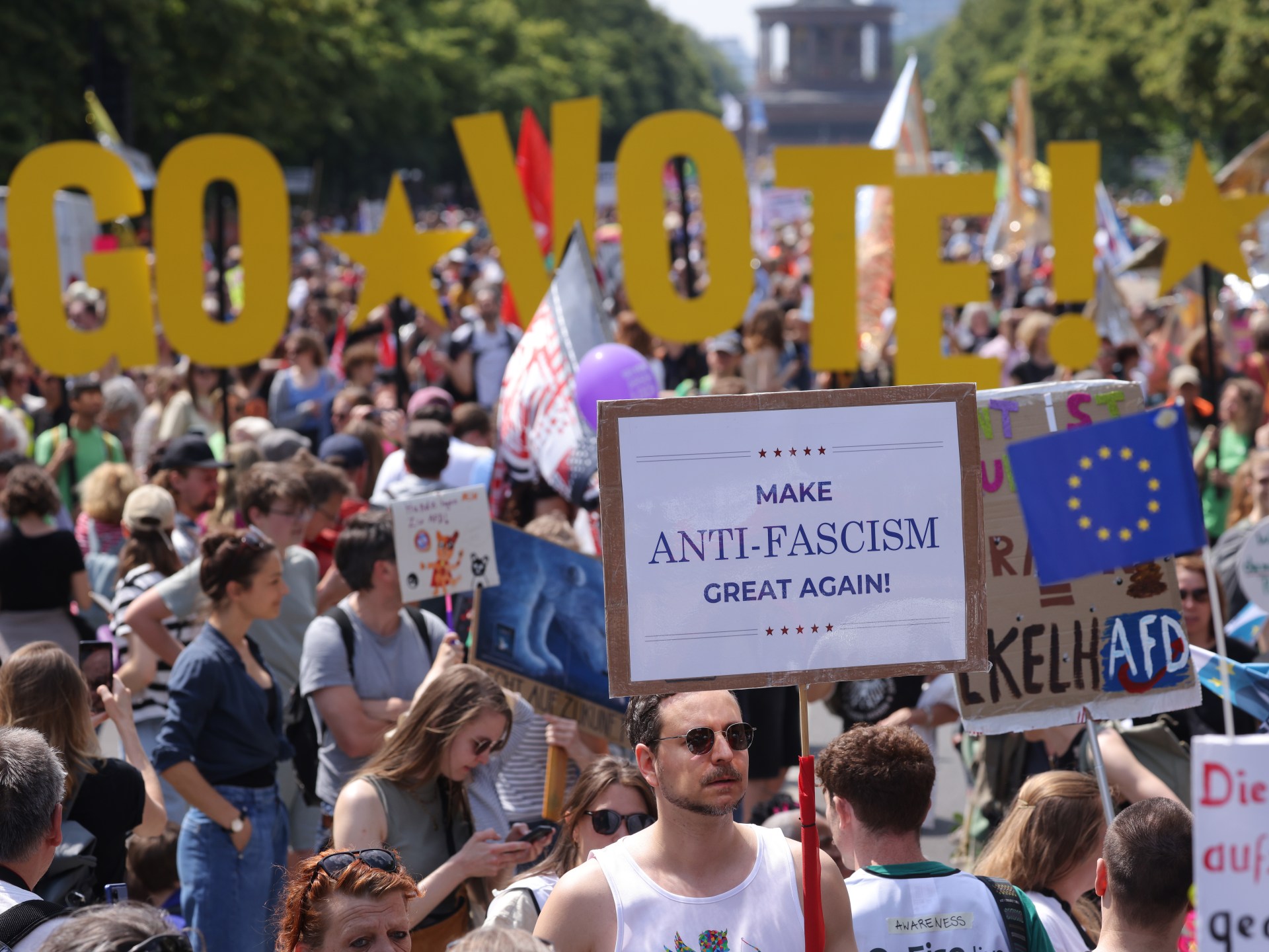 تظاهر عشرات الآلاف في ألمانيا أمس السبت عشية الانتخابات الأوروبية، تنديدا باليمين المتطرف ودفاعا عن الديمقراطية، وذلك قبل يوم من تصويت ألمانيا في انتخابات البرلمان