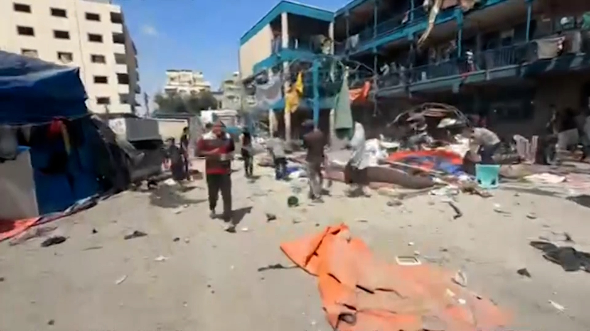 ووصل عدد شهداء المجزرة إلى 15 شهيدا و80 مصابا من النازحين بمخيم النصيرات (وسط قطاع غزة)، وفقا لمكتب الإعلام الحكومي في غزة. المصدر: الجزيرة