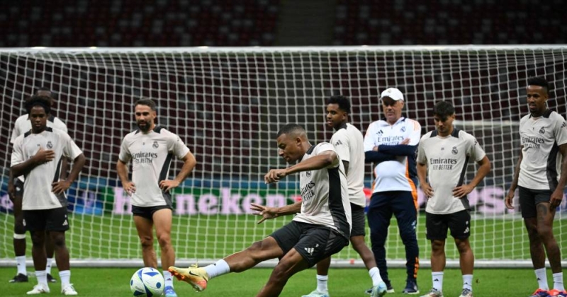 يخوض النجم الفرنسي كيليان مبابي مباراته الرسمية الأولى بقميص ريال مدريد الإسباني في مواجهة الكأس السوبر الأوروبية في كرة القدم الاربعاء امام اتالانتا الإيطالي في
