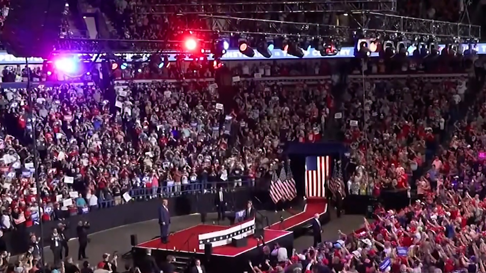 حذر مرشح الحزب الجمهوري دونالد ترامب في مهرجان انتخابي بولاية بنسلفانيا من دخول البلاد في ركود اقتصادي إذا لم يفز، على حد قوله. كما قال