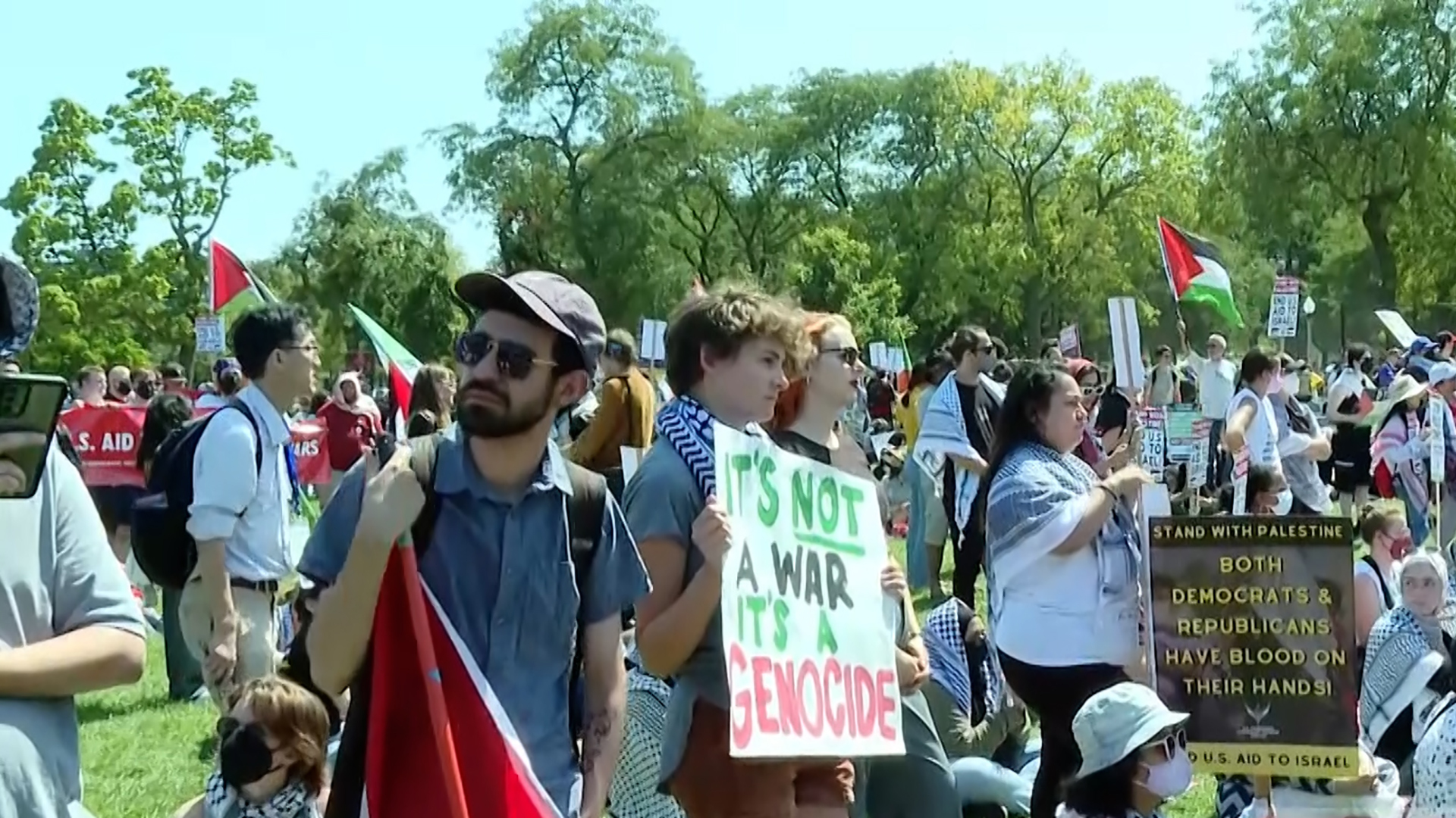 تظاهر الآلاف في محيط مقر انعقاد المؤتمر الوطني للحزب الديمقراطي بمدينة شيكاغو الأميركية للمطالبة بإنهاء الدعم لإسرائيل، وطالب المتظاهرون إدارة الرئيس بايدن بالضغط عليها لوقف