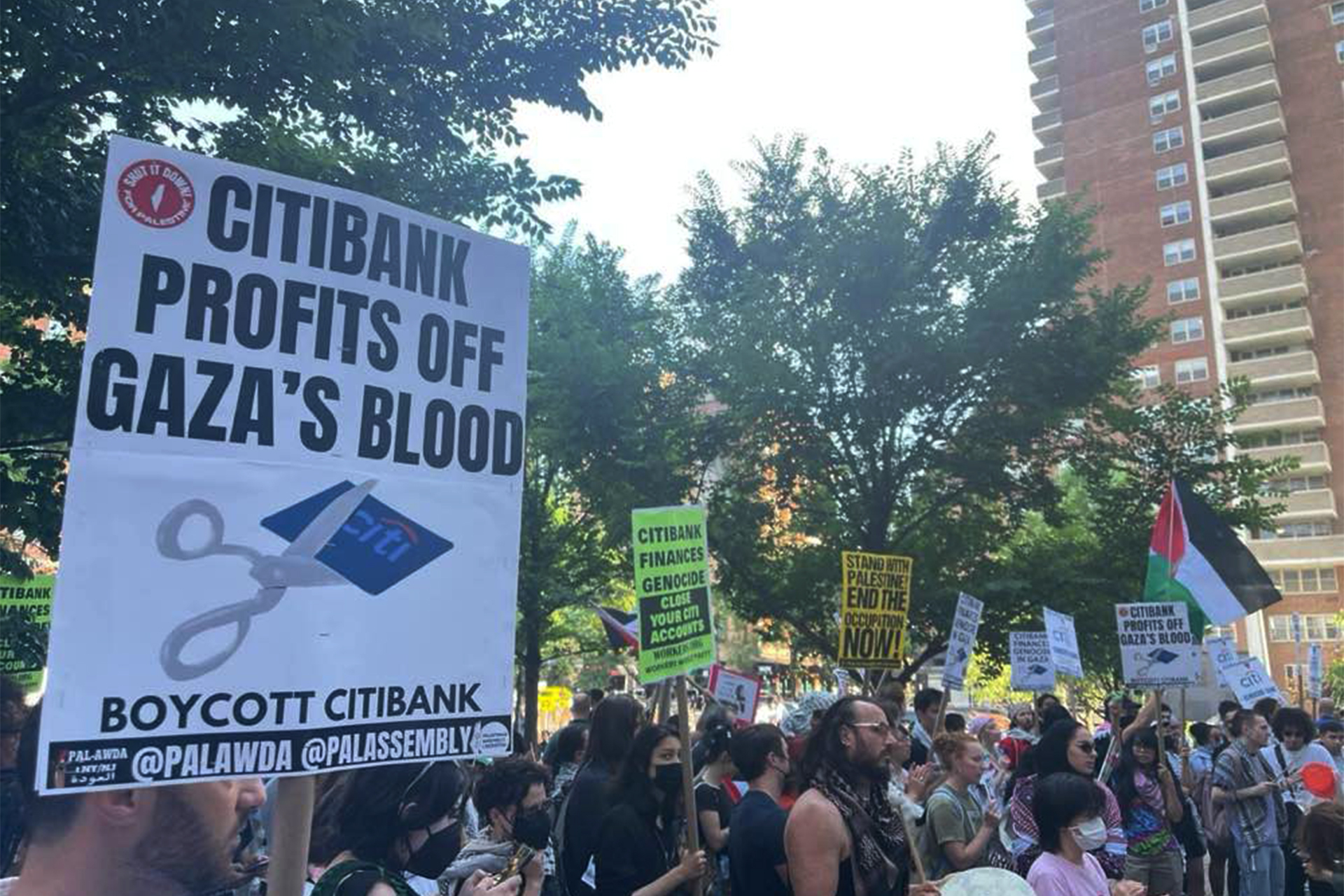نظم المئات من المتظاهرين لليوم الثاني على التوالي اعتصاما أمام مقر “سيتي بنك” في مدينة نيويورك، تنديدا بحرب جيش الاحتلال الإسرائيلي على غزة، واحتجاجا على