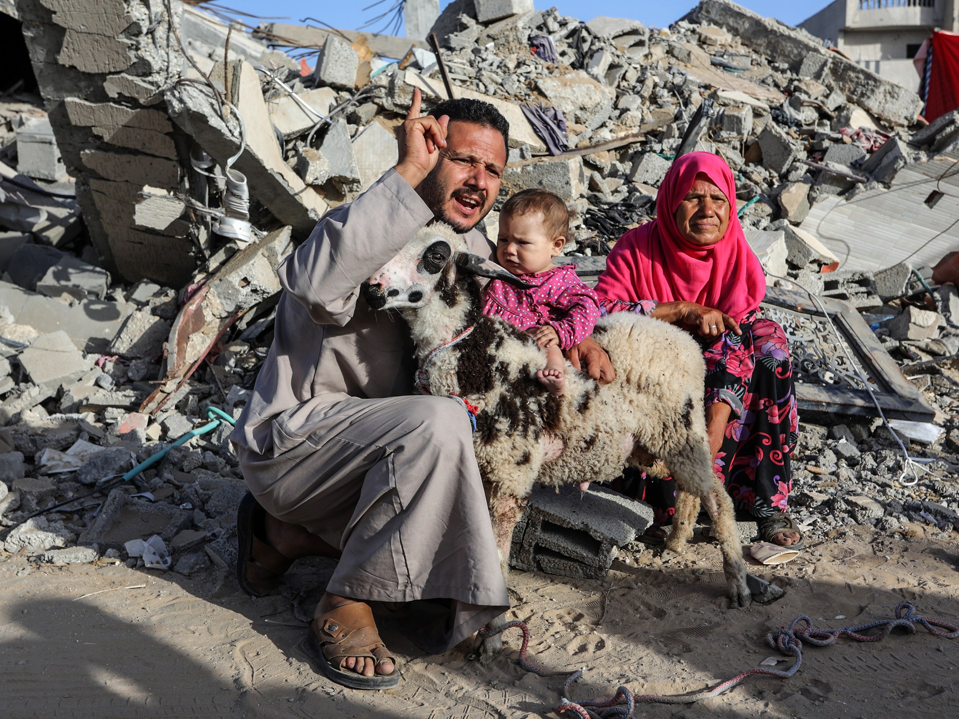 غزيون يذبحون الأضاحي على أنقاض منازلهم