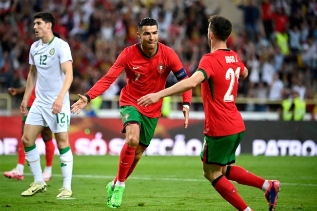 عزز النجم البرتغالي كريستيانو رونالدو رصيده التهديفي الدولي، ورفعه إلى 130 هدفاً، بعد تسجيله ثنائية في المباراة التي فاز فيها منتخب بلاده على ضيفه الأيرلندي