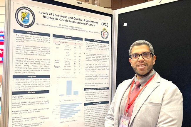 نال عضو هيئة التدريس في قسم العلاج المهني بكلية العلوم الطبية المساعدة في جامعة الكويت د. حمد الحمد، جائزة أفضل ملصق علمي خلال مشاركته في