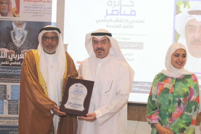 منحت الشبكة الوطنية للاتفاق العالمي للأمم المتحدة رئيس مجلس إدارة مبرة العوازم الخيرية السفير الأممي للشبكة الإقليمية للمسؤولية الاجتماعية حمد البسيس جائزة «مناصر لمبادئ الاتفاق
