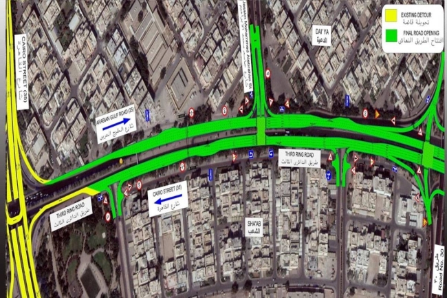 أعلنت الهيئة العامة للطرق والنقل البرى، بالتعاون مع الإدارة العامة للمرور، افتتاح الإشارة المرورية على الطريق الدائري الثالث بين منطقتي الدعية والشعب، وذلك فجر غد
