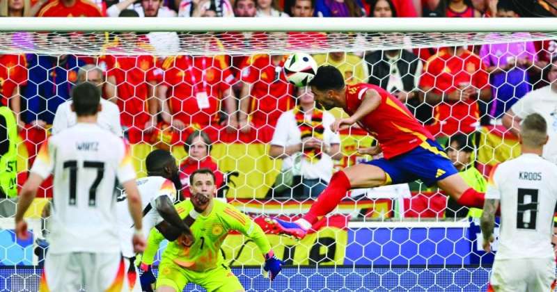 أنهى المنتخب الإسباني أحلام نظيره الألماني صاحب الضيافة في التتويج باللقب بفوزه عليه 2-1 بعد التمديد في ملحمة كروية وبلغ الدور نصف النهائي من كأس