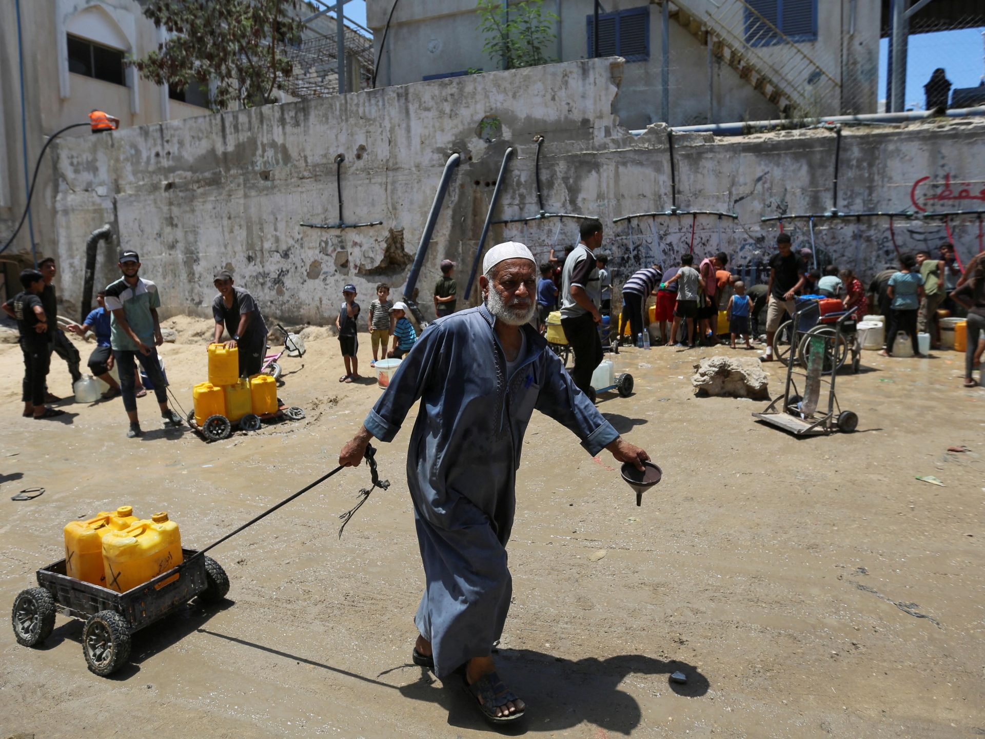 مع استهداف الاحتلال الإسرائيلي مصادر المياه كسلاح لتضيق الخناق على السكان تتواصل أزمة المياه في قطاع غزة، حيث انخفضت حصة الفرد الواحد من المياه من