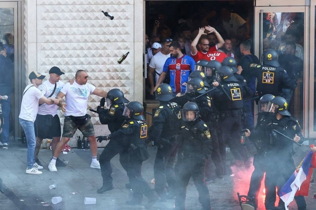 ذكرت الشرطة الألمانية، اليوم، أن هناك 10 أشخاص على الأقل، بينهم 9 من رجال الشرطة، أصيبوا بإصابات خفيفة في المواجهات التي وقعت مع الجماهير الصربية