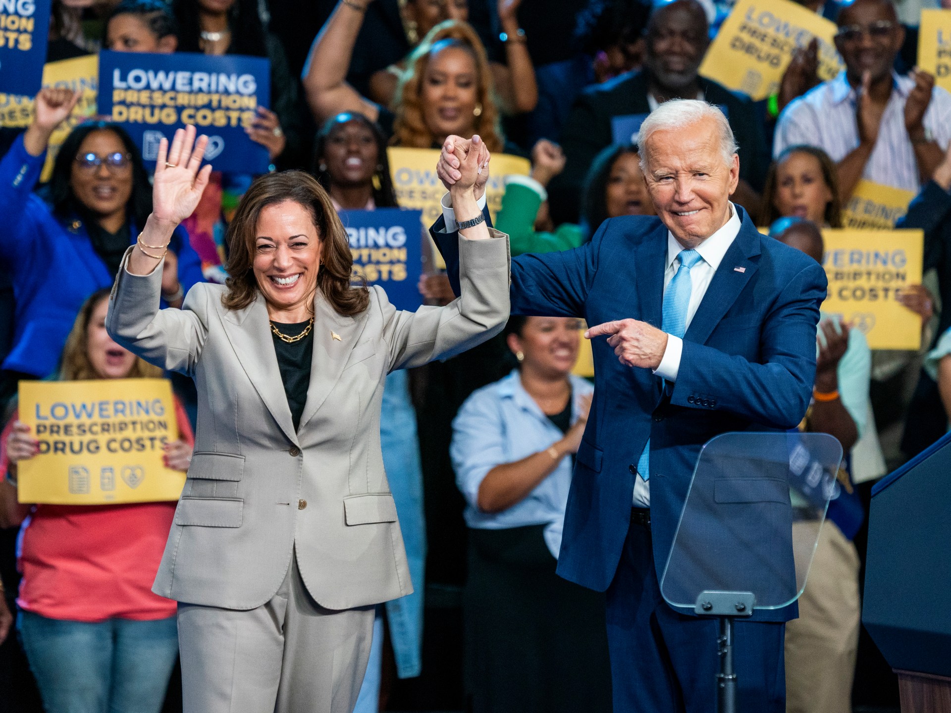 ظهر الرئيس الأميركي جو بايدن مع نائبته كامالا هاريس أمس الخميس للمرة الأولى خلال الحملة الانتخابية منذ أن حلّت محله مرشحة عن الحزب الديمقراطي للانتخابات