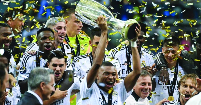 حقّق النجم الفرنسي كيليان مبابي بداية واعدة مع ريال مدريد الإسباني، وقاده لإحراز لقب كأس «السوبر» الأوروبي على حساب أتالانتا الإيطالي 2-0 على الملعب الوطني