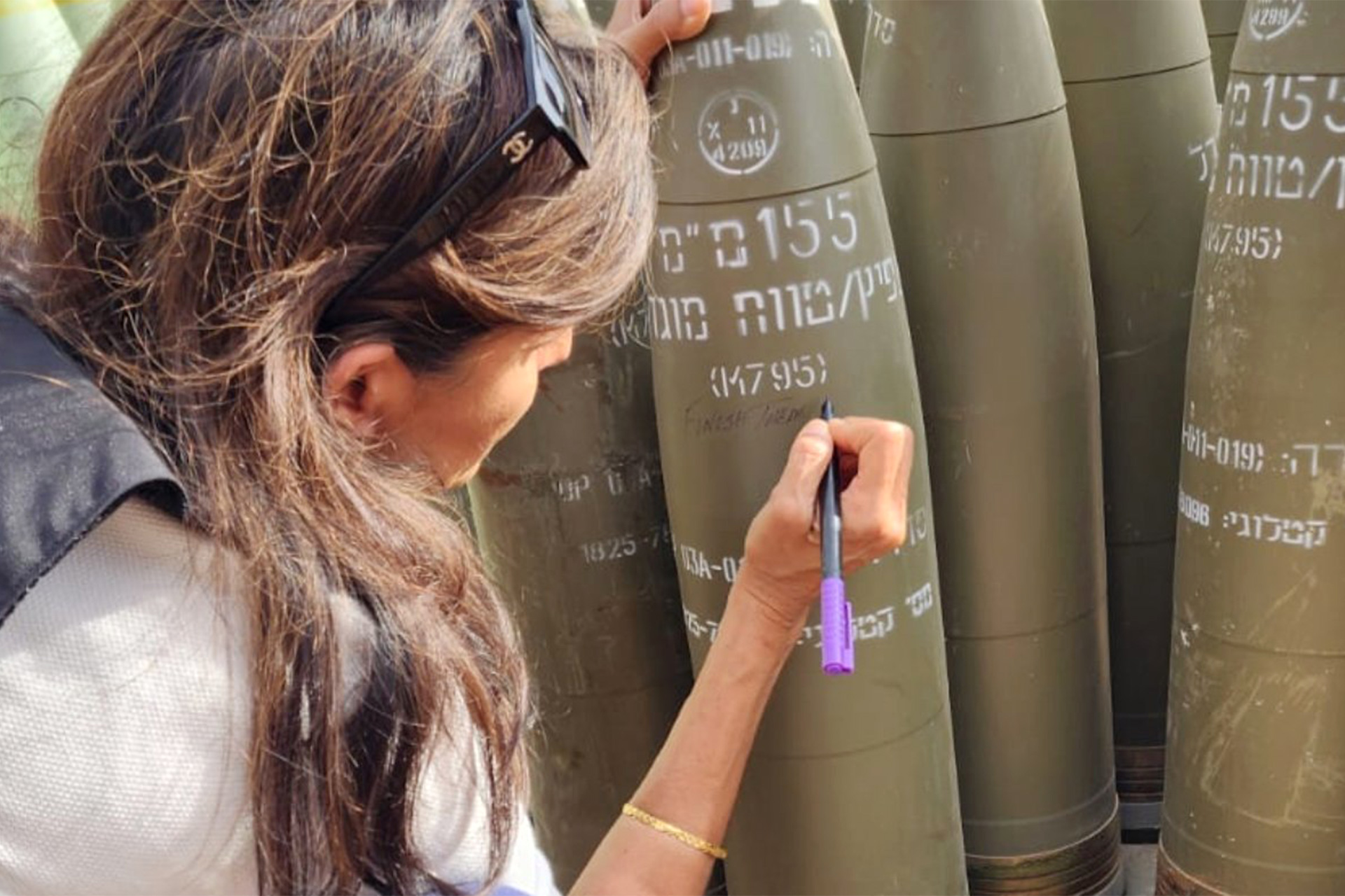 انتشرت على مواقع التواصل الاجتماعي ووسائل إعلام إسرائيلية صور تظهر المرشحة الجمهورية السابقة للانتخابات الرئاسية الأميركية، نيكي هيلي، تكتب عبارة “اقضوا عليهم” على قذيفة إسرائيلية