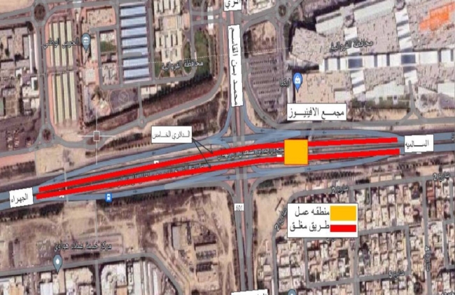 أعلنت الهيئة العامة للطرق والنقل البري، بالتعاون مع الإدارة العامة للمرور عن تحويل مؤقت لطريق الدائري الخامس، بالإتجاهين «تقاطع الخامس مع شارع بن القاسم»، من
