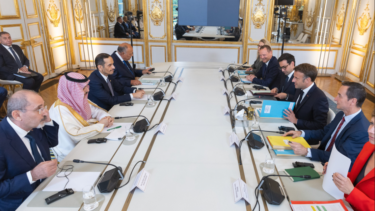 التقى الرئيس الفرنسي إيمانويل ماكرون في قصر الإليزيه بباريس وفد اللجنة الوزارية المكلف من الجامعة العربية ومنظمة التعاون الإسلامي وبحث معهم تطورات الحرب على قطاع