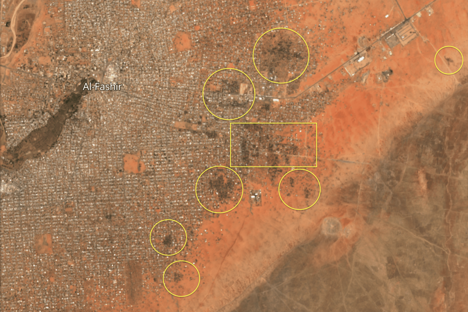 أظهرت صور بالأقمار الاصطناعية بين 5 و22 مايو/أيار الجاري دمارا واسعا في مدينة الفاشر عاصمة ولاية شمال دارفور بشمال غرب السودان، جراء القتال المستعر بين