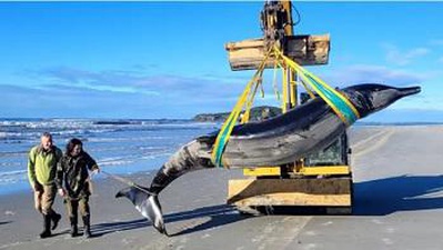 كشف علماء أن الأمواج جرفت إلى شاطئ في نيوزيلاندا جيفة حوت منقاري مجرفي الأسنان وهو نوع نادر للغاية لم يسبق رصده على قيد الحياة. وقال