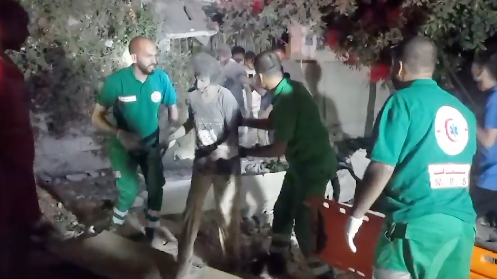 بثت شاشة الجزيرة مشاهد مؤلمة لفلسطينيين ينقلون جثامين شهداء وينقذون جرحى بعد غارة إسرائيلية تسببت في سقوط 4 شهداء بشارع الجلاء وسط مدينة غزة.