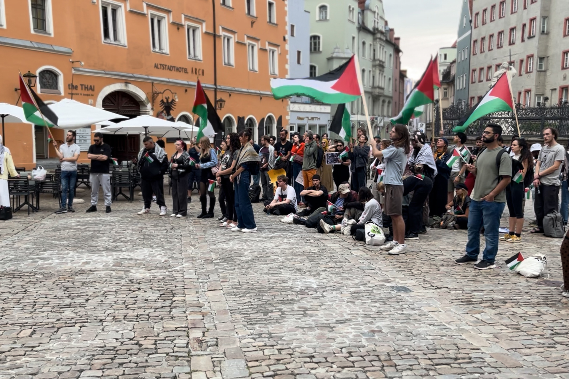بافاريا – في أحد أزقة المدينة القديمة في ريغنسبورغ، صدحت الأصوات، الجمعة، مطالبة بوقف الحرب على غزة، واجتمع العشرات من الناشطين والأهالي وسط البيوت الحجرية