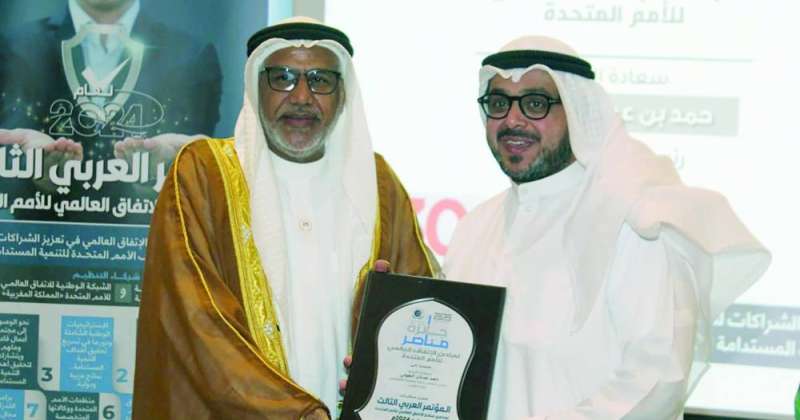 منحت الشبكة الوطنية للاتفاق العالمي للأمم المتحدة، رئيس جمعية المعلمين حمد الهولي جائزة «مناصر لمبادئ الاتفاق العالمي للأمم المتحدة لعام 2024»، وذلك ضمن فعاليات المؤتمر
