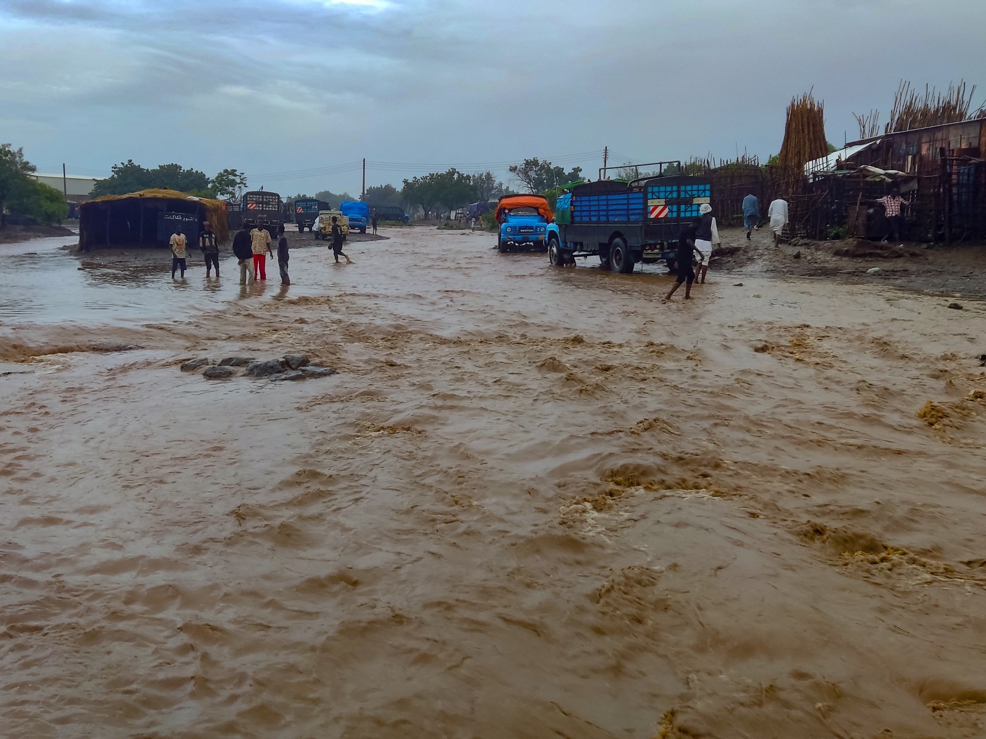 فاقمت الأمطار الغزيرة من معاناة النازحين في مراكز الإيواء شرق السودان وخصوصا في مدن القضارف كسلا وحلفا الجديدة. وغمرت مياه الأمطار -التي هطلت الجمعة- شوارع